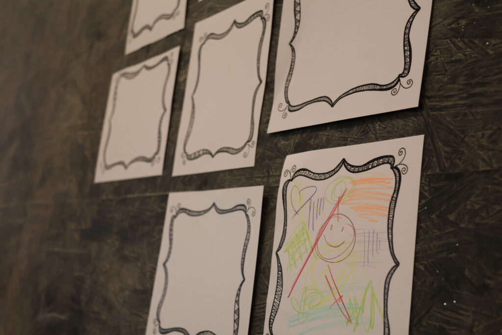 U Dnevnom boravku Dječje kuće jedna prazna galerija čeka na svoje umjetnine. Okviri su bijeli, postamenti prazni.