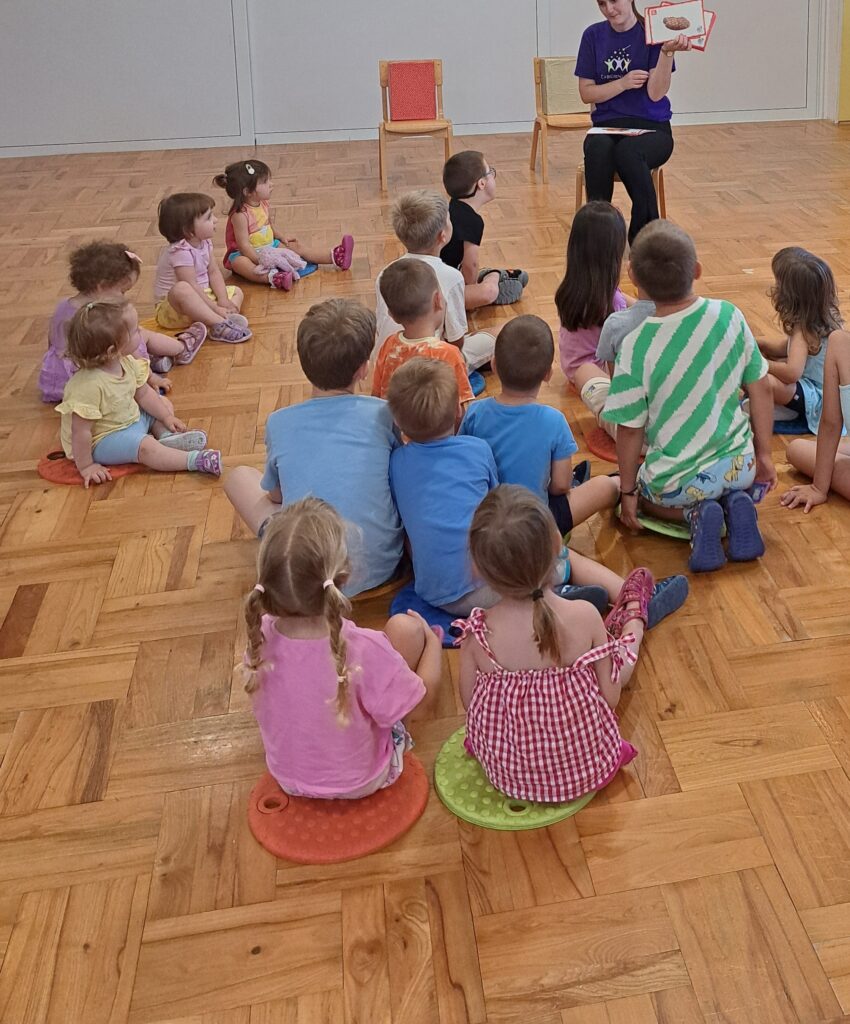 Djeca kroz igru postaju mali superjunaci i otkrivaju da hrana može imati posebne „supermoći“ – snagu, pamet, energiju i zaštitu. Kroz pokrete biraju svoju moć (💪 mišići, 🧠 glava, ⚡ poskok, 🛡️ ruke) i povezuju je s namirnicama poput borovnica, meda, jogurta, orašastih plodova, zobi i špinata.